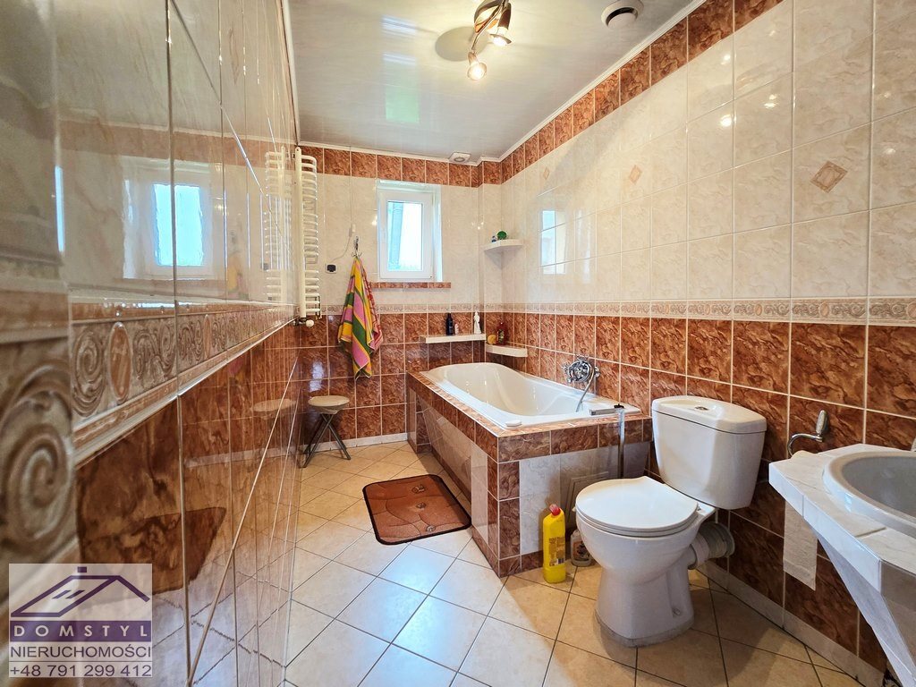 Dom wzniesiony w 2005 roku metodą tradycyjną, z pełną termoizolacją styropianową i dachem z blachodachówki. Łączna powierzchnia mieszkalna wynosi 145 m², podzielona na dwa niezależne poziomy. Dzięki takiemu układowi nieruchomość doskonale sprawdzi się jako przestrzeń dwurodzinna lub willa z wyraźnym podziałem stref dziennych i prywatnych.